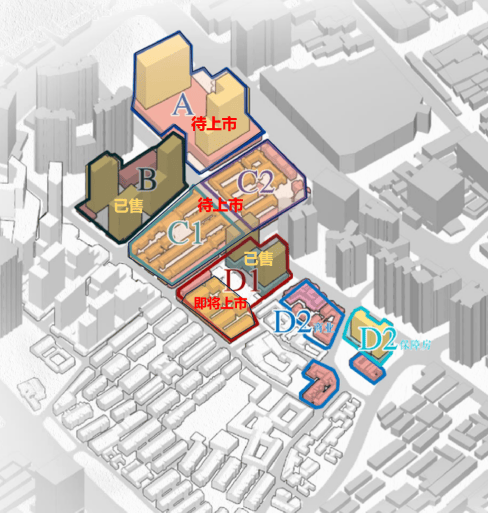 项目整体分为6个地块,即A、B、C1、C2、D1和 D2。