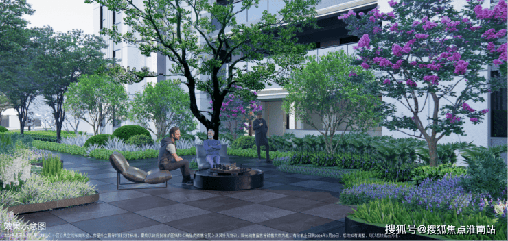 国际象棋雕塑打造的棋牌休闲花园,搭配紫薇、香橼、朴树等高大的灌木,营造一处林下的闲适空间。