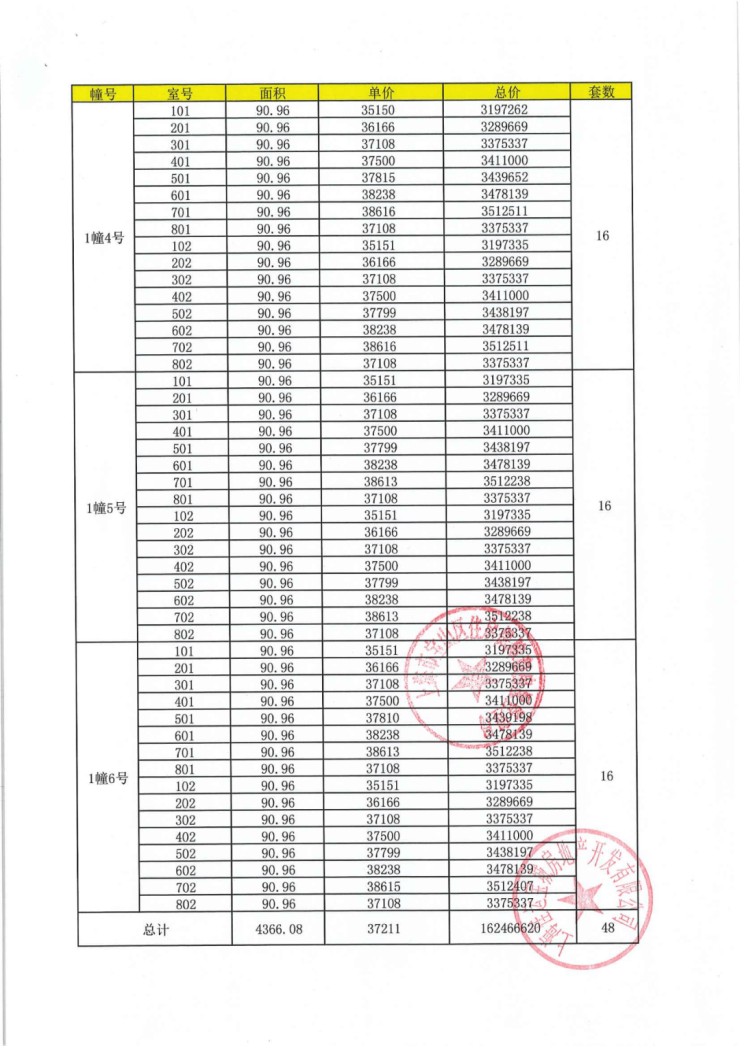 项目一房一价表