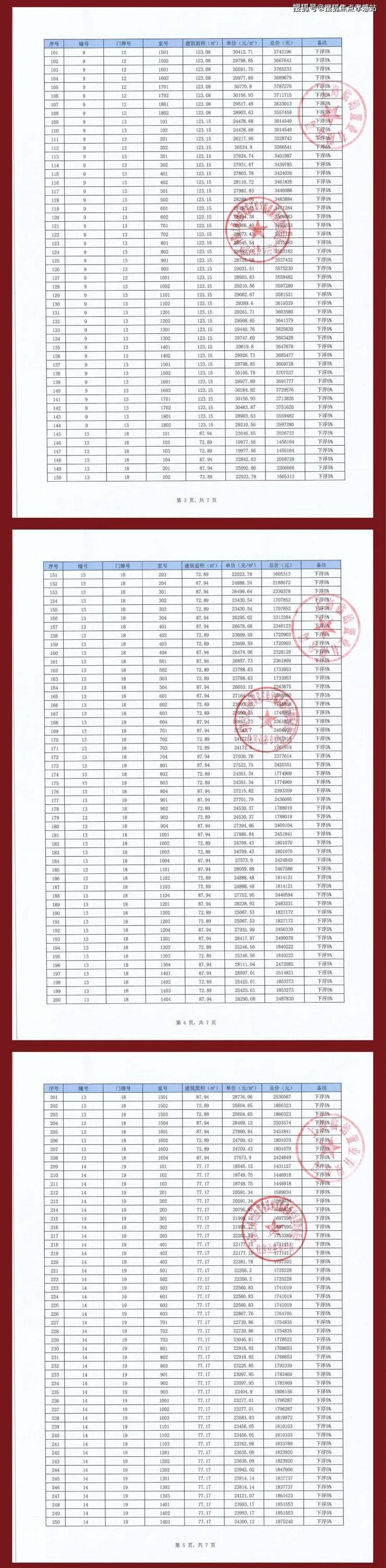 项目一房一价表
