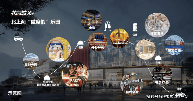 以“在地文化基因+异域度假风情+主题场景”融合形式,打造五大灵感空间,为城市注入鲜活能量,打造北上海微度假乐园,满足精致白领打卡以及家庭花式遛娃。