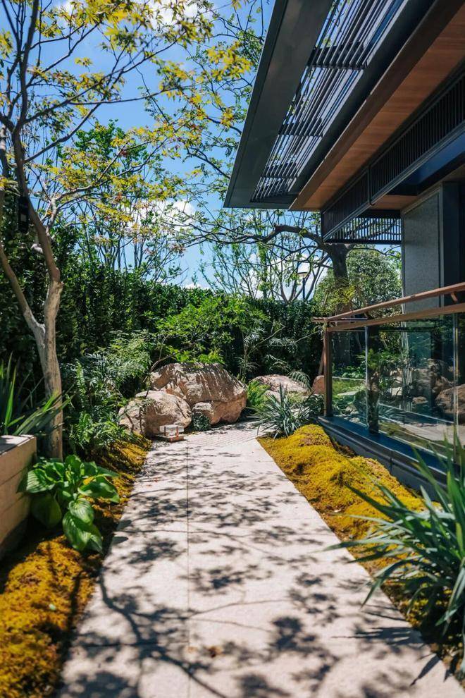 同时,色彩灵感源自《千里江山图》的青绿与《瑞鹤图》的石青,让建筑在阳光下晕染出宋画般的静谧;翡翠奢石、铜筑大门、整石造景等奢材的运用,则将宋代精工精神融入当代生活。