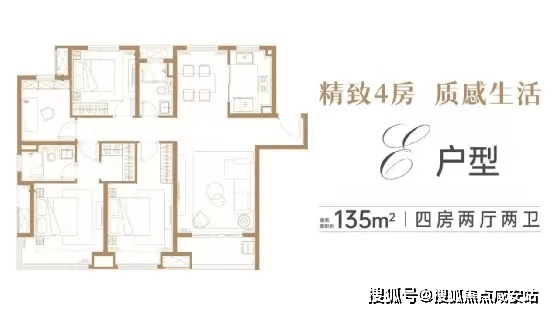 更多预算可选约121、128、135㎡、144㎡4房,部分户型图如下: