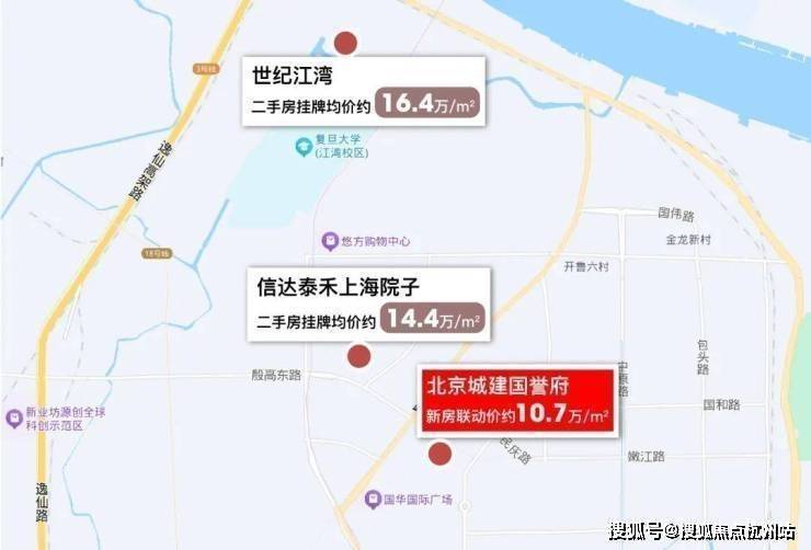 而北京城建国誉府距离三门路站直线约600米、距离20号线上海体育大学站直线约550米,步行可达。