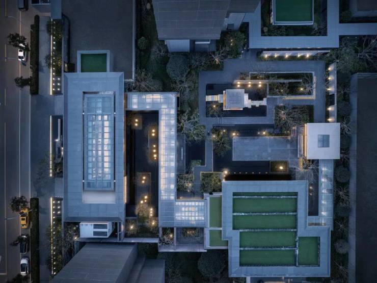 从空中俯瞰,跌水水景、亲水平台、色叶树阵等多重景观交融,展开一幅无与伦比的山水画卷。