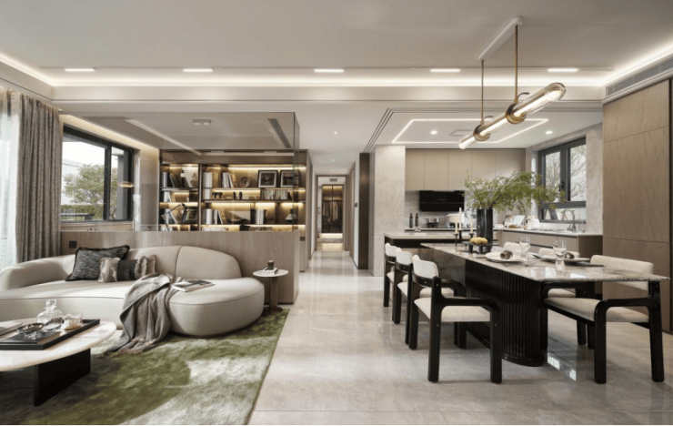 130㎡大户型,我们能看到创新设计的X百变空间,链接家人情感的同时,更强调提供丰盛多变的生活方式。在这里,居住者可以将其打造为书房/琴房室,为自己带来放松身心的私享空间。同时,也可以将其拓展,成为约6.2米面宽的超级会客厅,尽可能延伸出更大的社交场地。