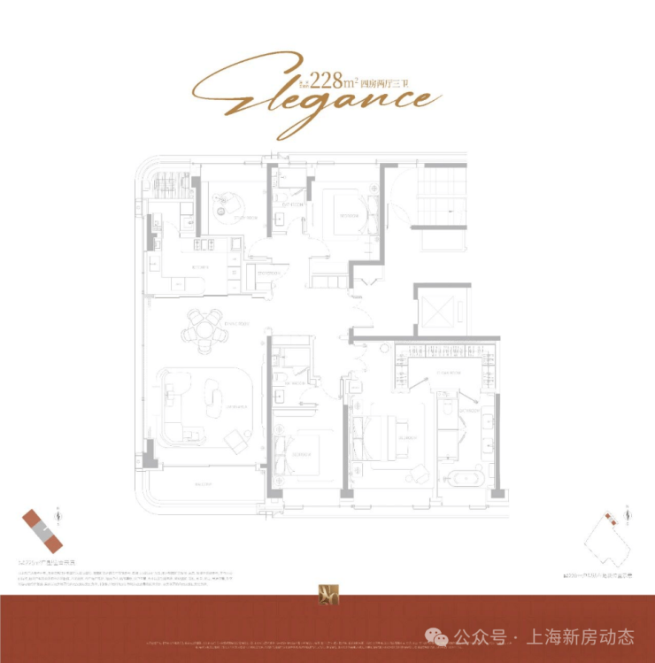户型方面,所有90套户型的采光,都有即将入市的90套天际大平层圈层纯粹,中间户是185㎡,边户是228㎡,均为四房两厅三卫设计,全系类一梯一户的配置。