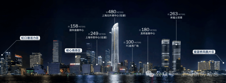 此外,北外滩区域还规划了1栋380米建筑,2栋300-320米建筑,9栋200-265米的超高建筑。