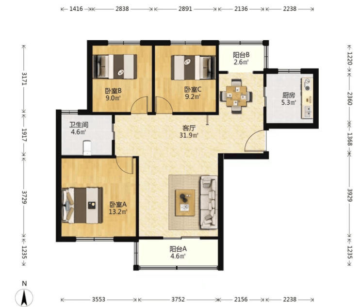 建面约58-106㎡1~3房