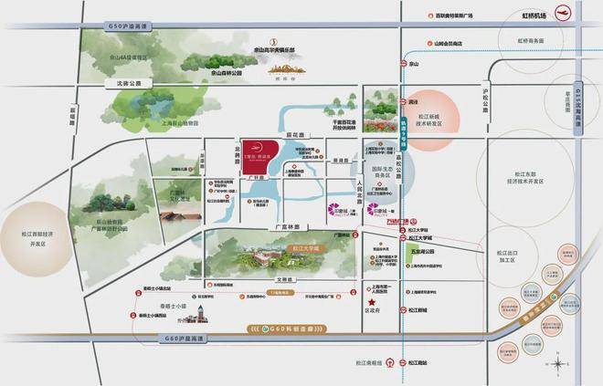 生态资源方面:项目西侧约800米是4A景区广富林文化遗址、广富林郊野公园,项目北侧约2公里处辰山植物园、佘山旅游度假区、欢乐谷等等,是休闲娱乐的好去处。