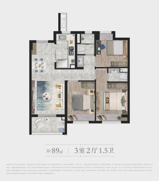 [ B户型 ] 建筑面积约89㎡ | 3房2厅1.5卫