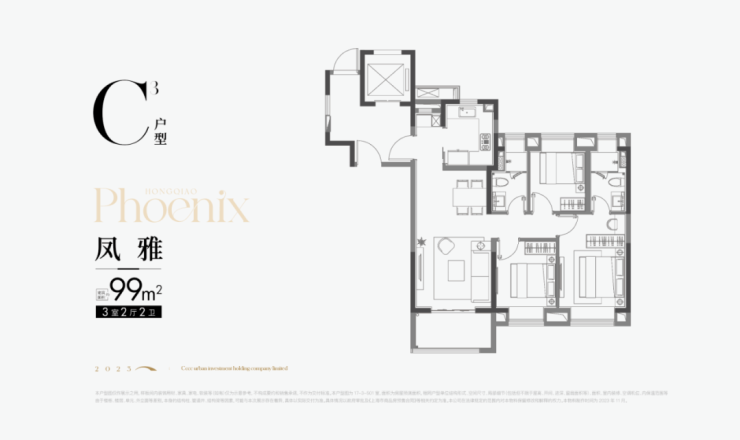 · 建面约99㎡户型则进阶3房2卫,适配对品质有需求的首置或首改客户!