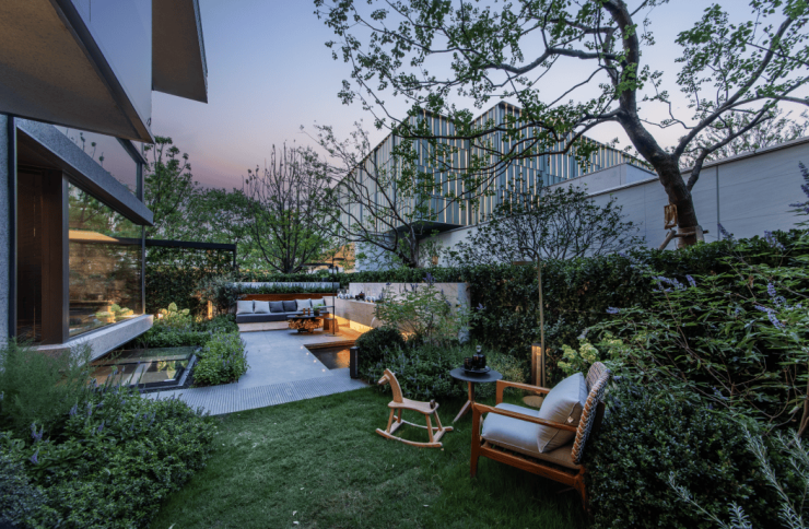 在社区景观营造层面,时代之城规划了一条约500m的连续花园轴、约600m日常漫步街区,交织成生态骨架,业主每日归家从南翔繁华商圈穿梭而过,随即步入绿意盎然的私属领域,这种由喧嚣到静谧的空间转换,赋予日常生活仪式感。