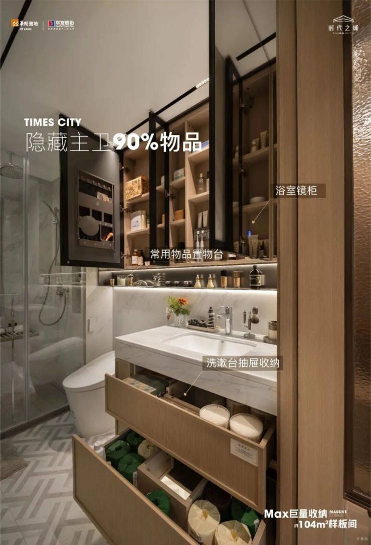 从最新开放的104户型样板间可以看出,项目对新品户型的收纳储藏空间做了全维升级,实用性更强。