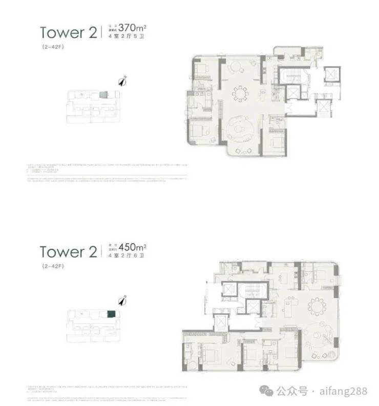 在两栋大楼的42至44层,共设有六套整层的约640㎡大平层。