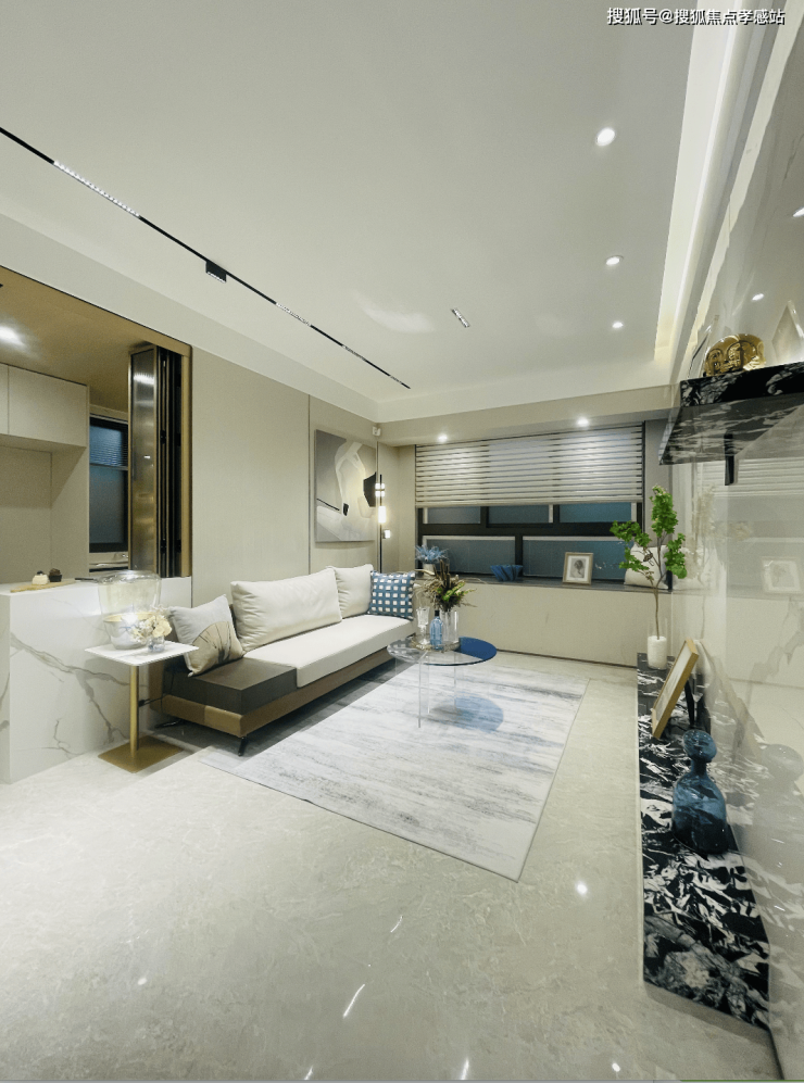 独立的入户玄关,出入皆有生活的仪式感,更方便做细致的收纳分区;客厅、餐厅相互独立,客厅南连宽景阳台,餐厅北连飘窗,让空间得以延展的同时,也让阳台的功能多样化;厨房就近连接餐厅,动线清晰,客餐厅通透明亮。