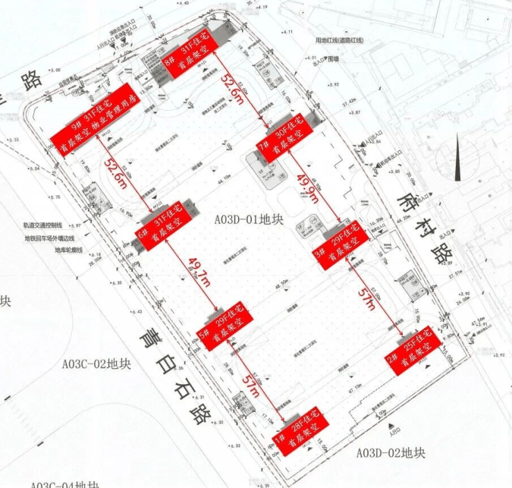 当大多数社区还在为30米的楼间距努力时,中海环宇玖章官方售楼处电话/地址☎️:400-1010-064已经实现了质的飞跃——大部分楼间距达到约50米,最小处也有49.7米,最大处更宽达57米。