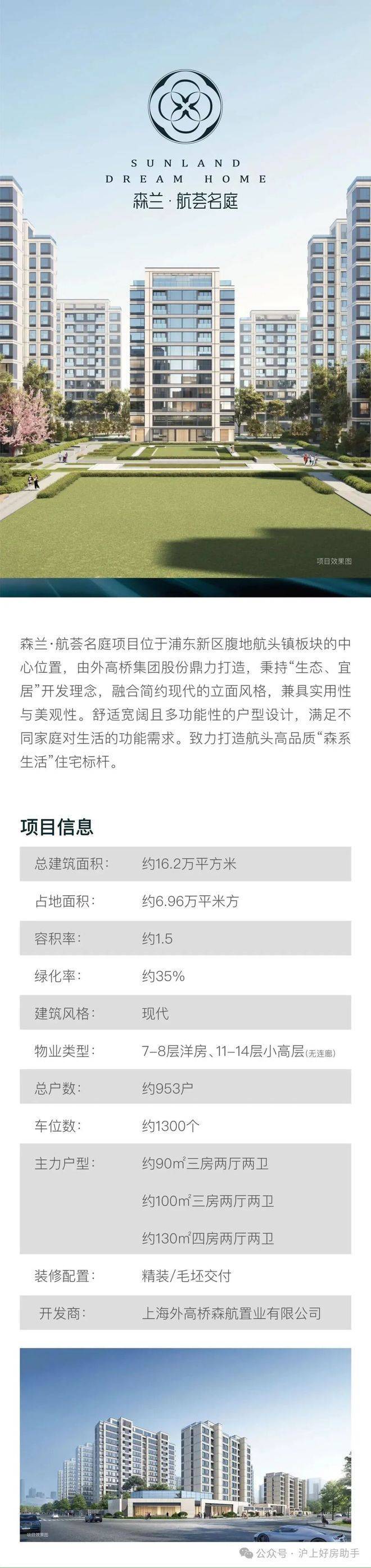 【森兰·航荟名庭】是外高桥集团股份在航头打造的首个项目,集团将与航头镇携手把握时代机遇,发挥国企担当,✅✅✅森兰航荟名庭售楼处电话:400-8787-740✅✅以丰富的开发经验和管理能力,延续外高桥·森兰品牌基因,秉持“生态、宜居”开发理念,致力打造航头高品质“森系生活”住宅标杆。
