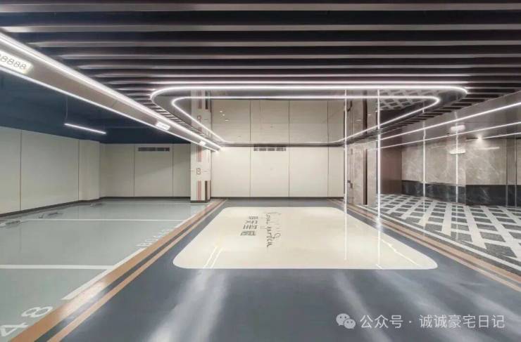 车库公区方面,项目采用贯穿式鱼尾灯坡道和超耐磨地坪,过道全部是精装吊顶,地下管道和局部区域进行二次包裹。