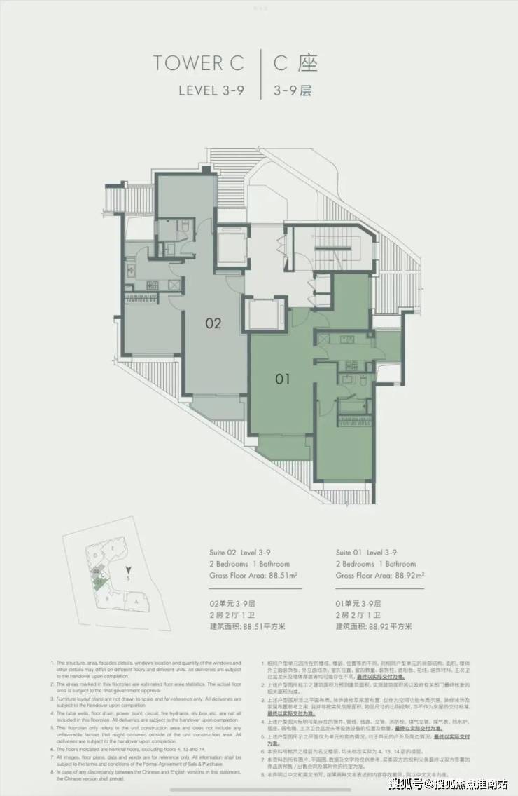 C座 建面约88㎡,3-9层平面图