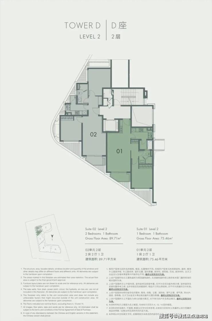D座 建面约73㎡&87㎡,1层平面图