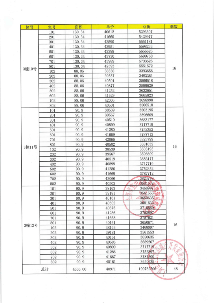 项目一房一价表