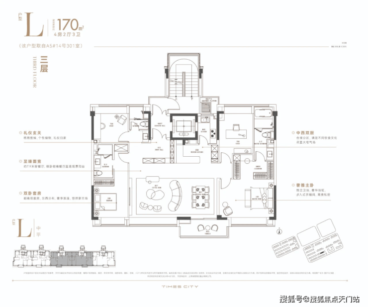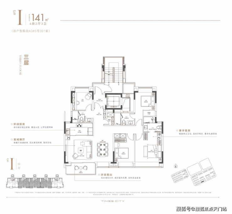 华润置地时代之城高层产品将百平上下的改善户型做出了轻奢级的居住体验,把约133㎡的改善四房做出了豪宅的尺度感。