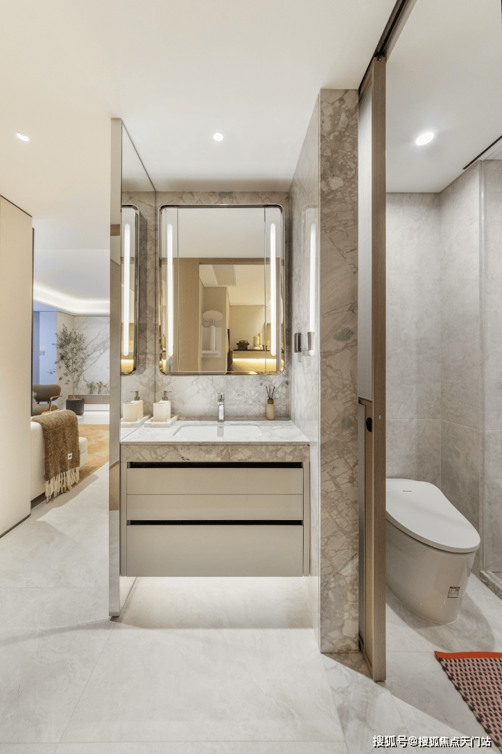 卫生间更是配备了美妆冰箱、高仪(或同档次品牌)花洒,主卫配有松下(或同档次品牌)智能一体马桶。