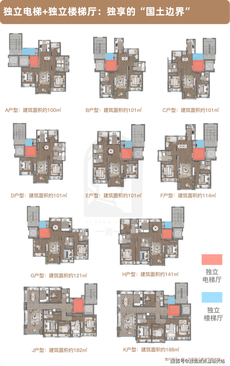 户户独享的“国土边界”,独立的楼梯厅+电梯厅,相当于把一辆保时捷放在家门口。