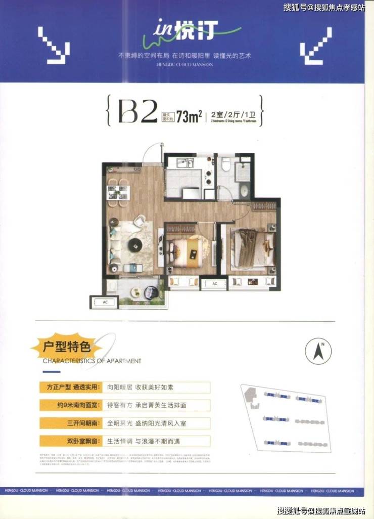 项目将推出洋房和小高层产品,包括建面约73㎡2房2厅1卫、74㎡2房2厅1卫、92㎡3房2厅2卫。 项目目前在售户型为73/74㎡两房,无需积分,直接认购,总价约310万起,线上预约中