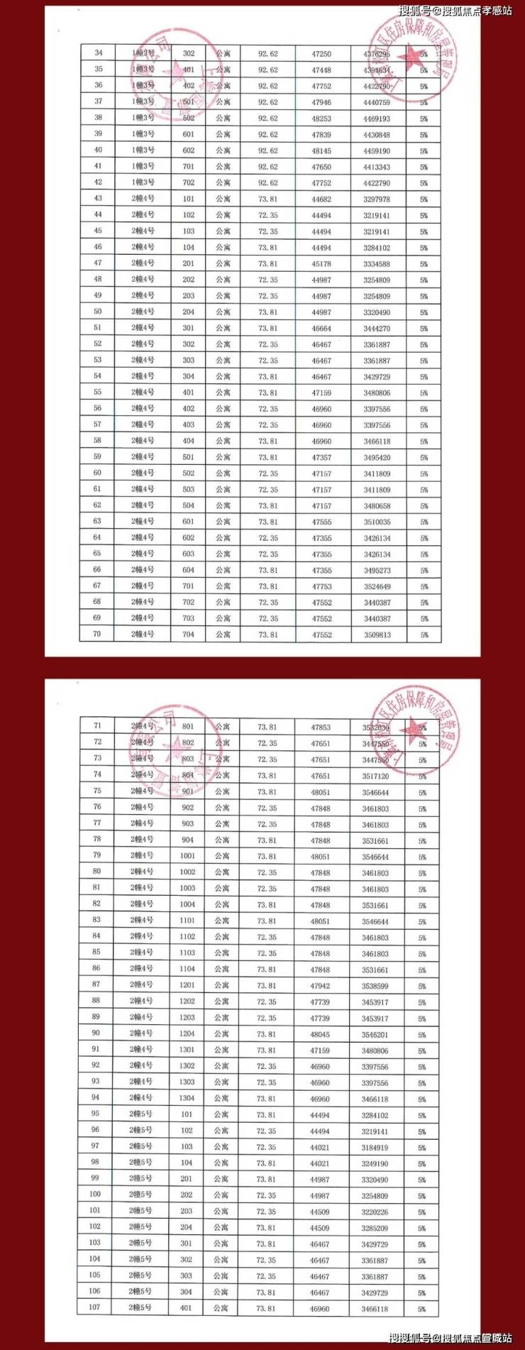项目一房一价表