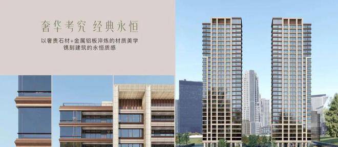 项目可视面都是古铜色金属铝板、米黄色铝板/石材、边套270°大转角飘窗,且从正面、侧面到背面,立面都保持精致统一。