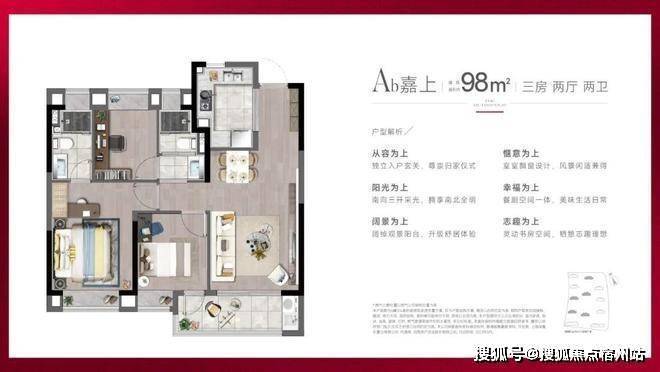 建面约98㎡3房2厅2卫户型,分别是边套、中间套✅✅深安上居售楼处电话:400-8787-740✅✅,满足不同人群的居住需求。