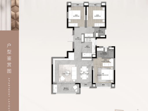 建面约 165㎡四房两厅三卫 :终极改善四房,南向三开间,超大采光面;LDK 一体化设计,搭配多重飘窗,空间通透开阔;双套房设计,主卧与老人房均为独立套房,带独立卫浴,兼顾私密性与便利性;两间次卧可作为儿童房、书房或客房,满足多孩家庭、三代同堂或亲友居住需求;户型赠送面积多,使用率高达 83%,空间尺度奢阔,功能布局完善,是内环内稀缺的大平层改善户型。