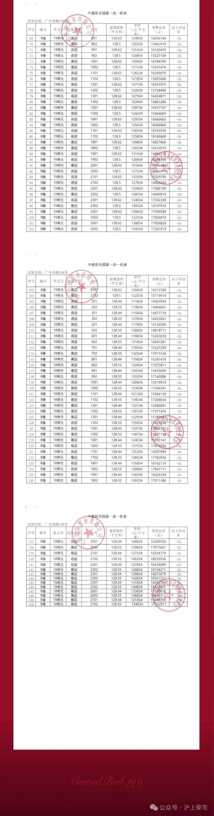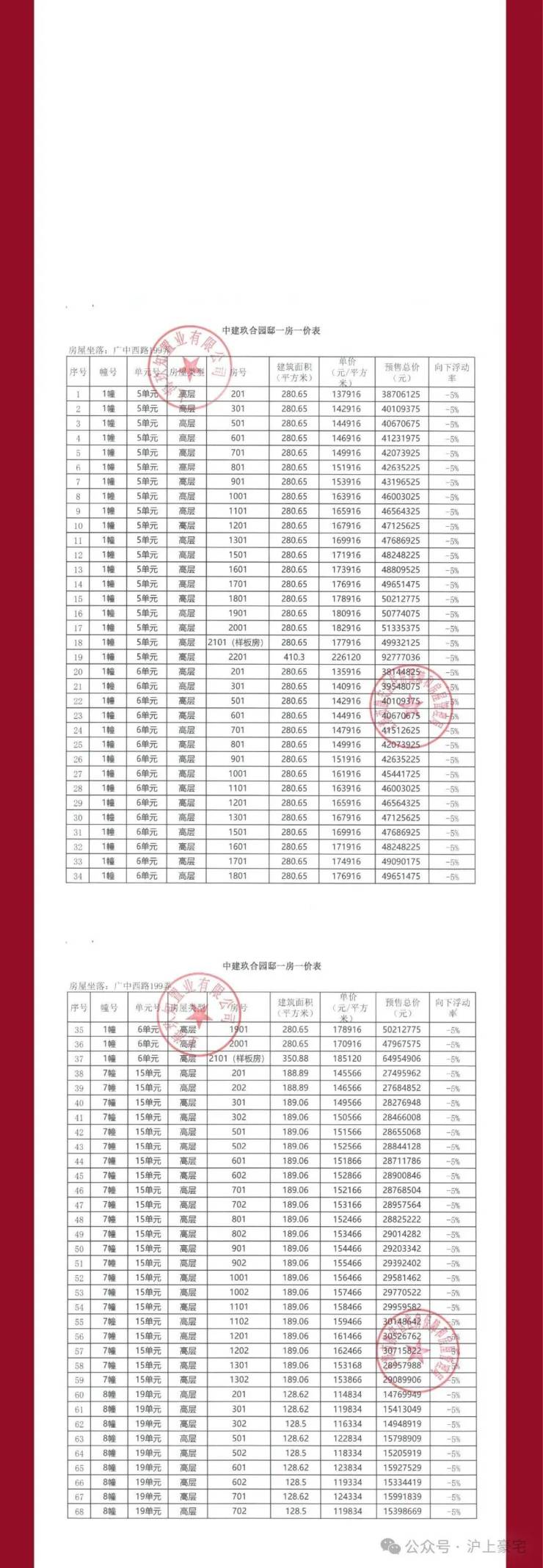 项目一房一价表▼