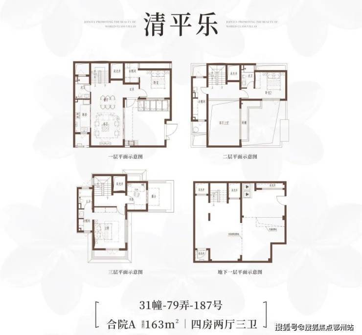 约163㎡院落空间,总共由地上三层、地下一层空间组成,并带有入户花园、地下室。 房型开间达9.5米,采光优良, 一楼层高约3.3米,二楼、三楼层高约3.1米,舒适度极高。跃级产品,容纳世家大族的生活起居。 地下空间面积达90㎡,层高约5.3米。可打造成健身房、影音室、游戏室,甚至是酒窖。为生活延展预留万般想象,满足塔尖阶层家庭追求。