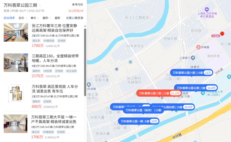 说这话是有依据的,万科翡翠公园就是一个典型案例,被张江园区包围,是张江高知人群改善置业的香饽饽,你再看一下它现在的价格: