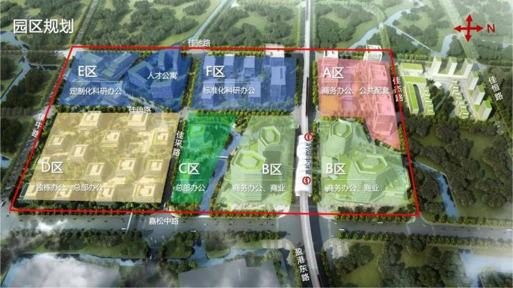 市西软件园核心位置就在嘉松中路站两侧,这里正打造漕河泾赵巷科技绿洲,一共六个地块