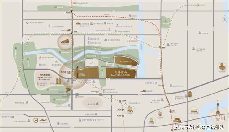 休闲方面: 约20万㎡南大中央公园(建设中),紧邻社区300米。建成后与桃浦中央绿地共建的超级绿楔,形成上海中心城区最大连片生态矩阵。