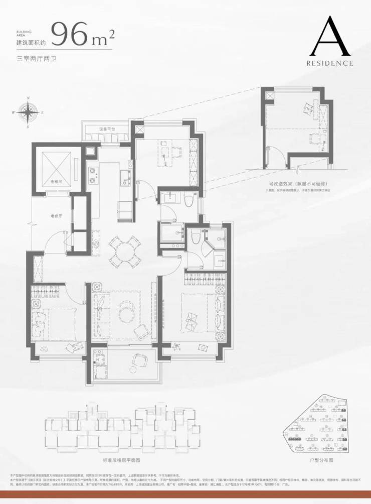① 建筑面积约96㎡3房 经典飞机户型 精致进阶
