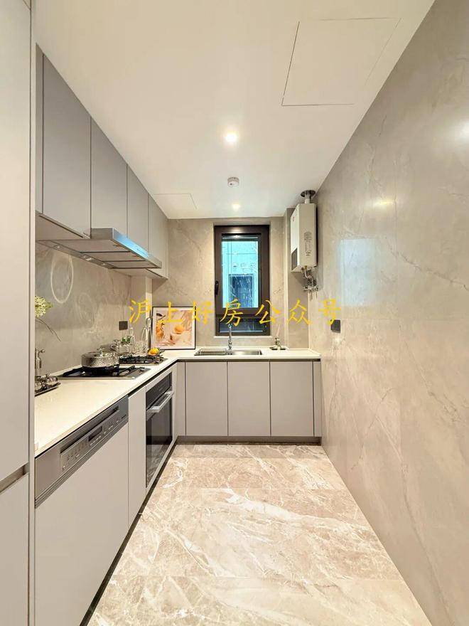第五个亮点, 宽阔的L型厨房,两面靠墙,灶台和水槽布置空间充足,实际使用能够满足各类烹饪需求。