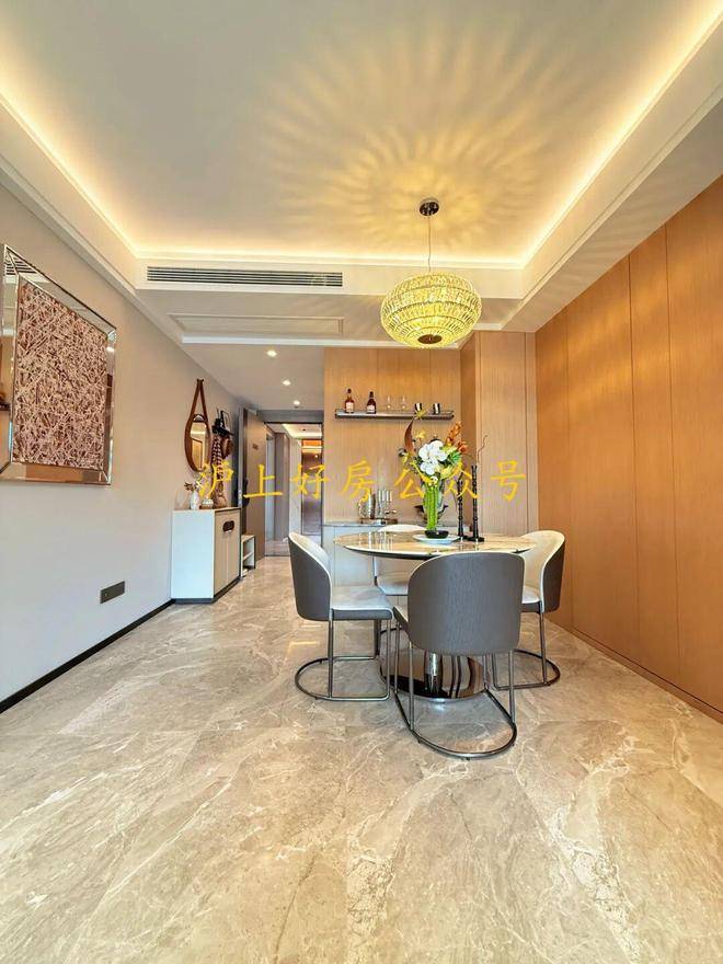 第三个亮点, 是客餐厅一体化设计,外连阔景阳台,采光非常好,空气更加流通,同时增进了家人间的互动。