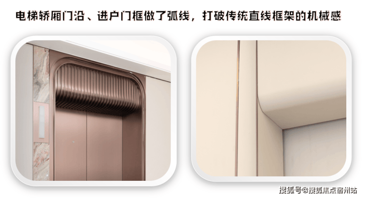比如,电梯轿厢门沿、进户门框也皆 以流畅弧线勾勒,打破传统直线框架的机械感,赋予空间流动性与艺术张力,业主日常等电梯和归家更具有仪式感。