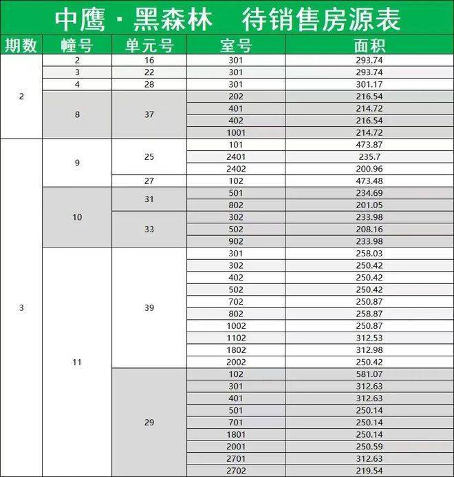 中鹰黑森林在售房源列表▼