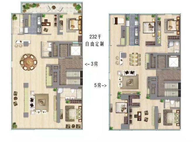 • 面 积:200.96㎡-.㎡(交付三房两厅三卫)