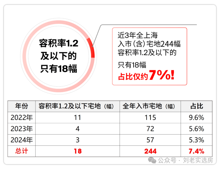 据统计,在2022年容积率1.2以下的宅地还有11块入市,2023年锐减至4块、2024年则只有3块,3年合计18块占比总市场仅约7%,稀缺属性爆表。