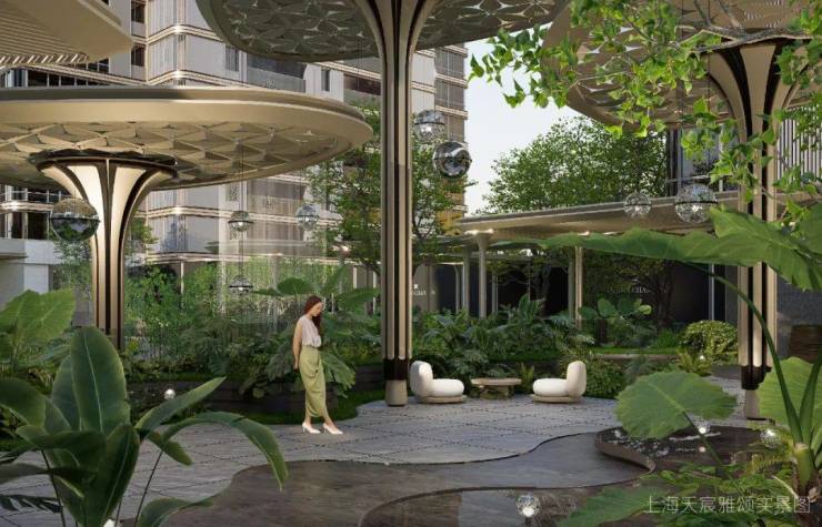 初至「上海天宸雅颂」,一条曲径通幽的临街绿道,以层叠的绿植为天然障,将沿街的嘈杂与喧嚣隔绝于外。信步其间,恍若穿越另一个世界,进入一座隐于尘嚣的森境花园。