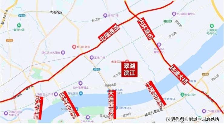 交通方面,周边1公里内有多条轨道交通,东侧约400米有18号线平凉路站,西侧约700米是4号线杨树浦路站,西北侧1公里为4、12号线大连路站。地块到东外滩滨江的直线距离约580米。
