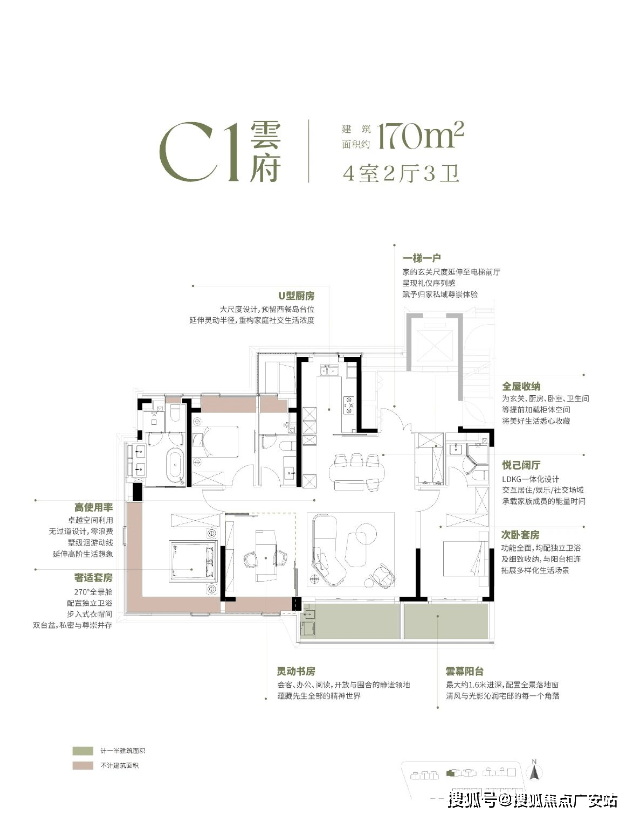 主力户型:建面约113-170㎡3-4房高层,建面约175-220㎡精装叠墅