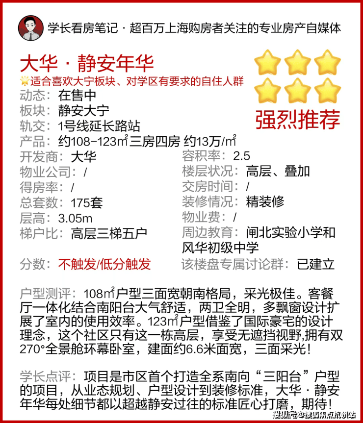 要知道,静安教育高地拢共不过三处:静安寺附近、静教院周边,以及项目所在的 “风华-闸实教育圈” 。前两者虽地段好,但 “房价高、房龄老” 是不争事实;而大华·静安年华 拥有全新房龄+全新产品力+价格优势。